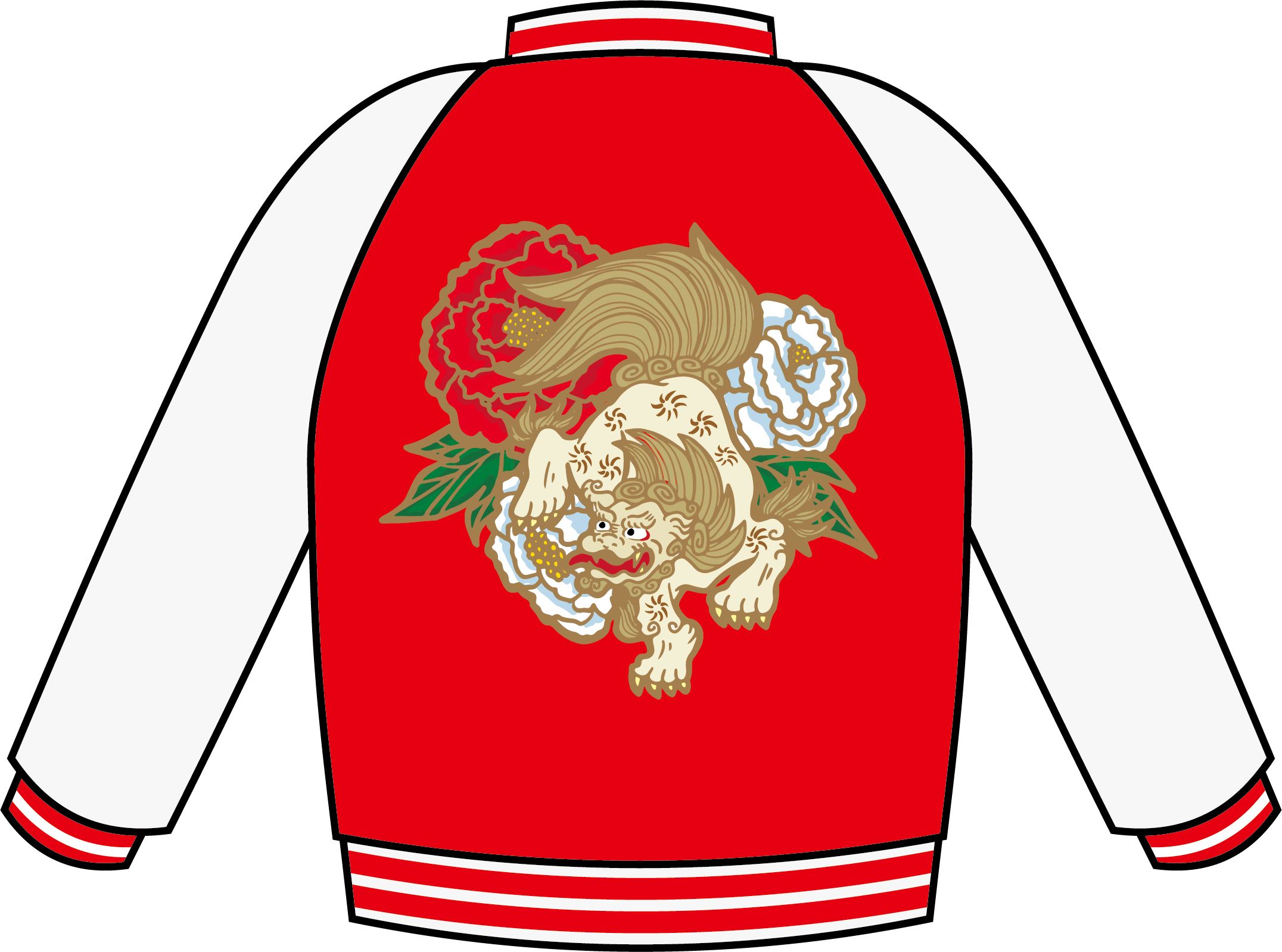 スカジャンの表面には富士山と龍の刺繍が施され、裏面には赤系の地色に虎の刺繍が入るリバーシブル仕様となっています。